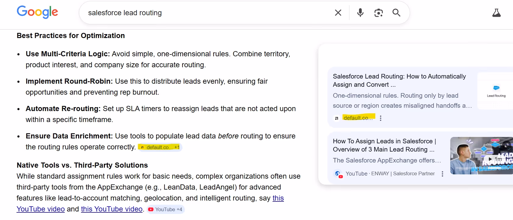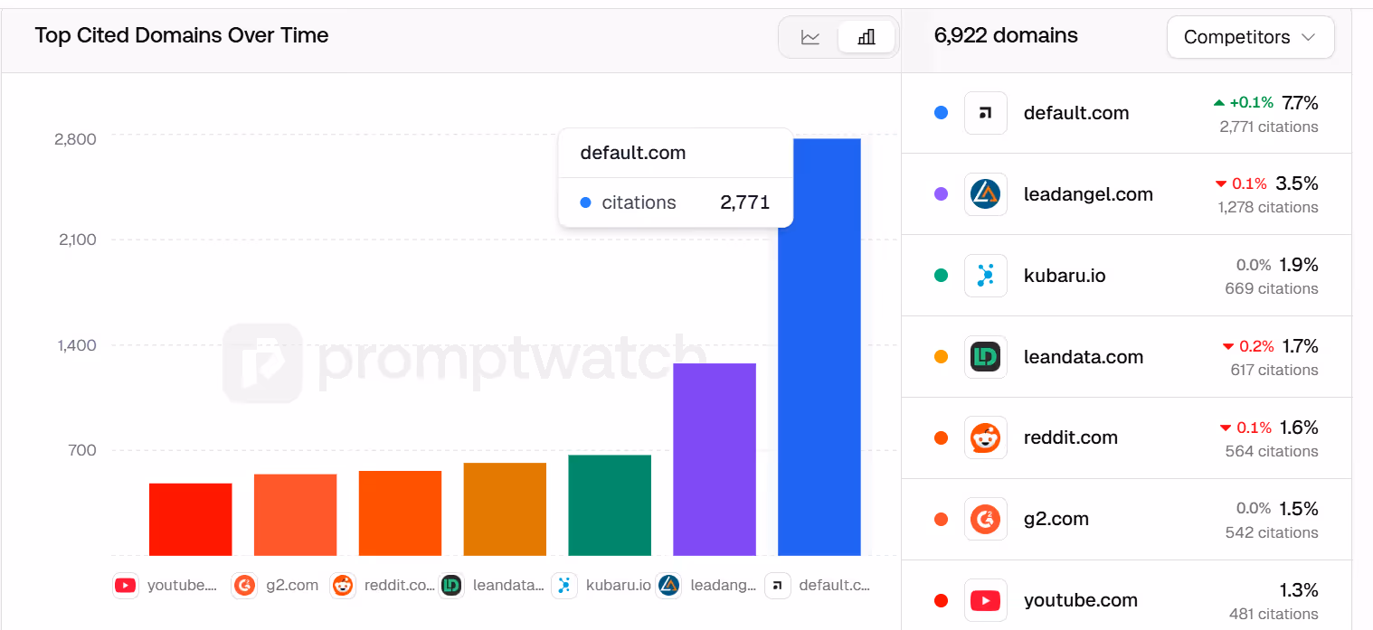 - On the AEO side, we reverse-engineered exactly what sources AI models pull from when a buyer types a prompt. Reddit threads, blogs, review sites—every source citing our target keywords. Then we created content across those channels targeting the core keywords/prompts so Default would show up in AI search.