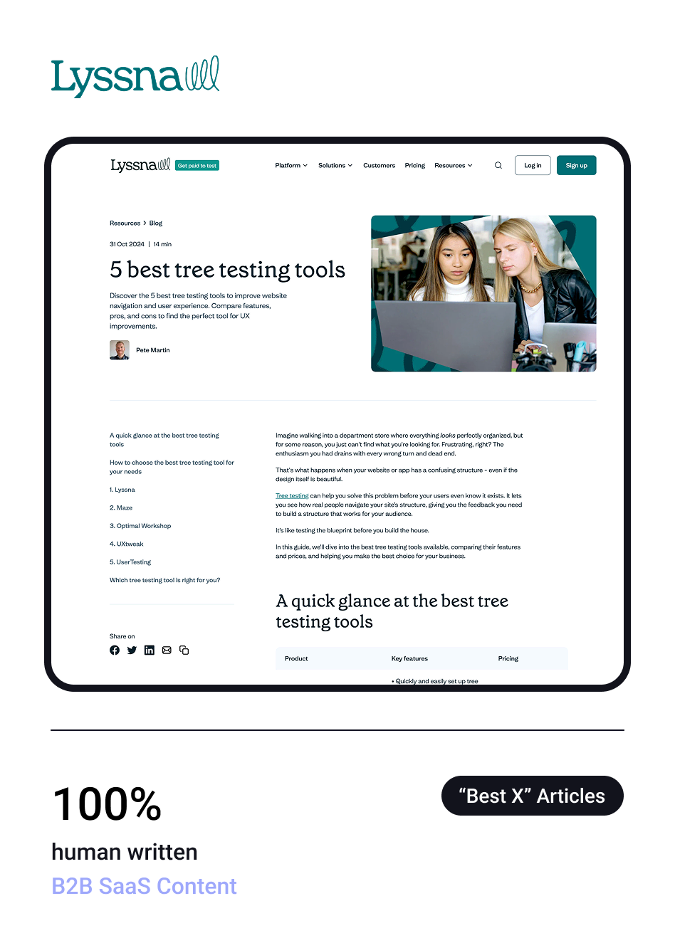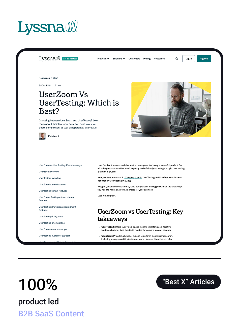 Lyssna are user testing field in the UX tooling space.