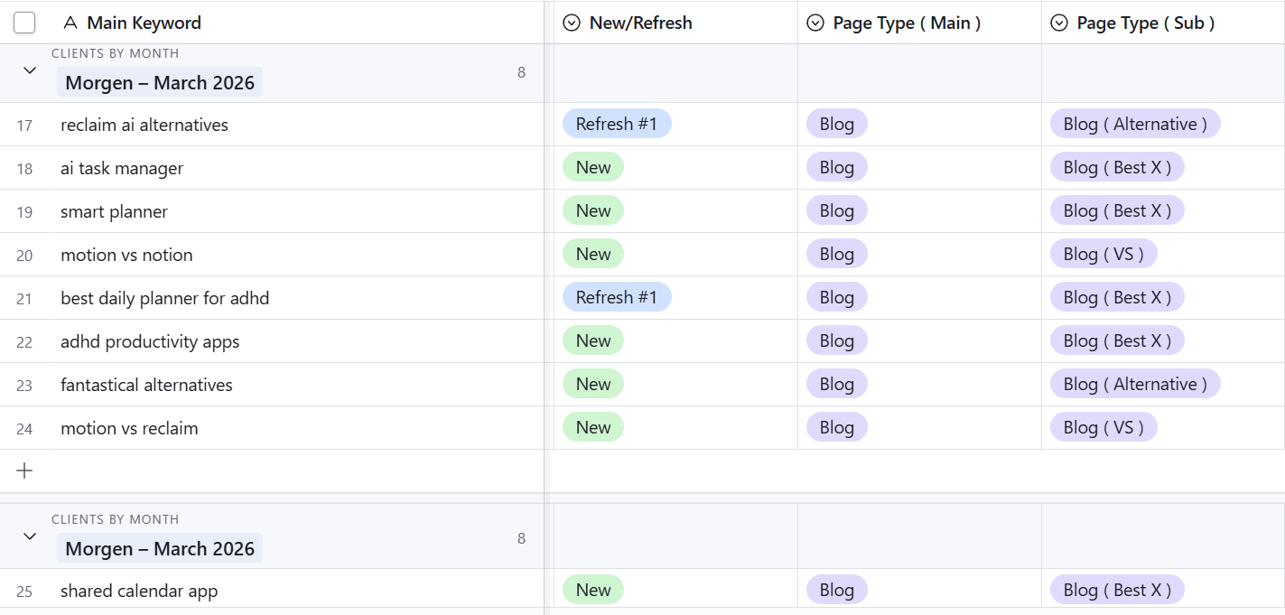 From there, execution ran itself. Jim didn't need to check in. The content was rolling, on time, on brief, and built to hit what LLMs look for: comparison formats, depth, real answers.