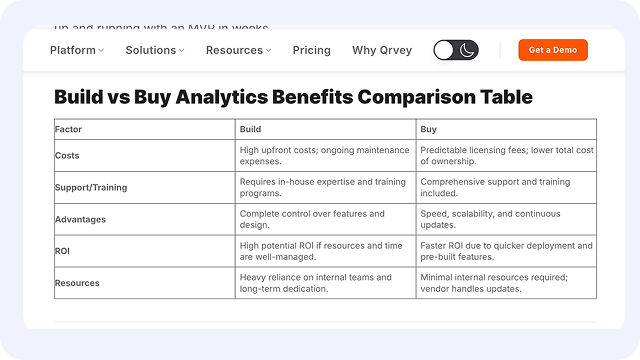 We wrote blogs that answered the exact questions Qrvey's buyers had, but we also structured them to hit what LLMs specifically look for: comparison content, table formats, real reviews, and real case studies. The result was content that ranked on Google, showed up in AI search, and accurately portrayed Qrvey's positioning as the embedded analytics platform for SaaS.