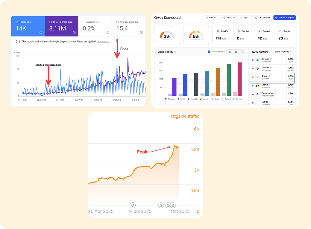 Content was the engine. Everything we wrote spoke directly to Qrvey's ICP, went deep enough on the subject matter to actually convert, and was structured so AI search could pick up the right signals about what Qrvey does and where it fits in the market.
