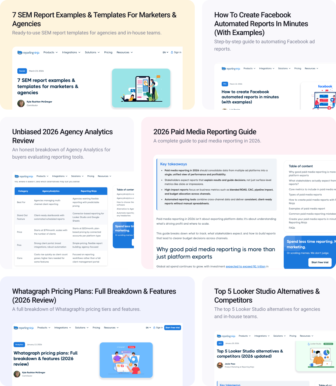 We wrote content focused on Reporting Ninja's ICP: agency marketers and in-house teams evaluating reporting tools. Every piece was structured to rank on Google and fuel AI search signals.